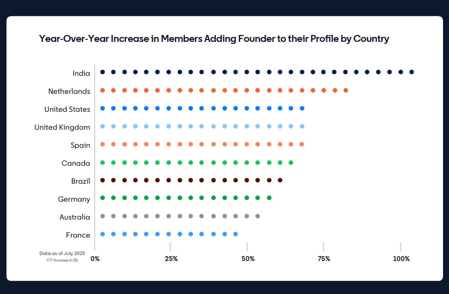 1. Founder Surge & Networks - Founder titles grew 60% YoY as more professionals pursue entrepreneurship. 75% of SMB marketers say audiences rely on their network, not just brand channels, when vetting businesses.