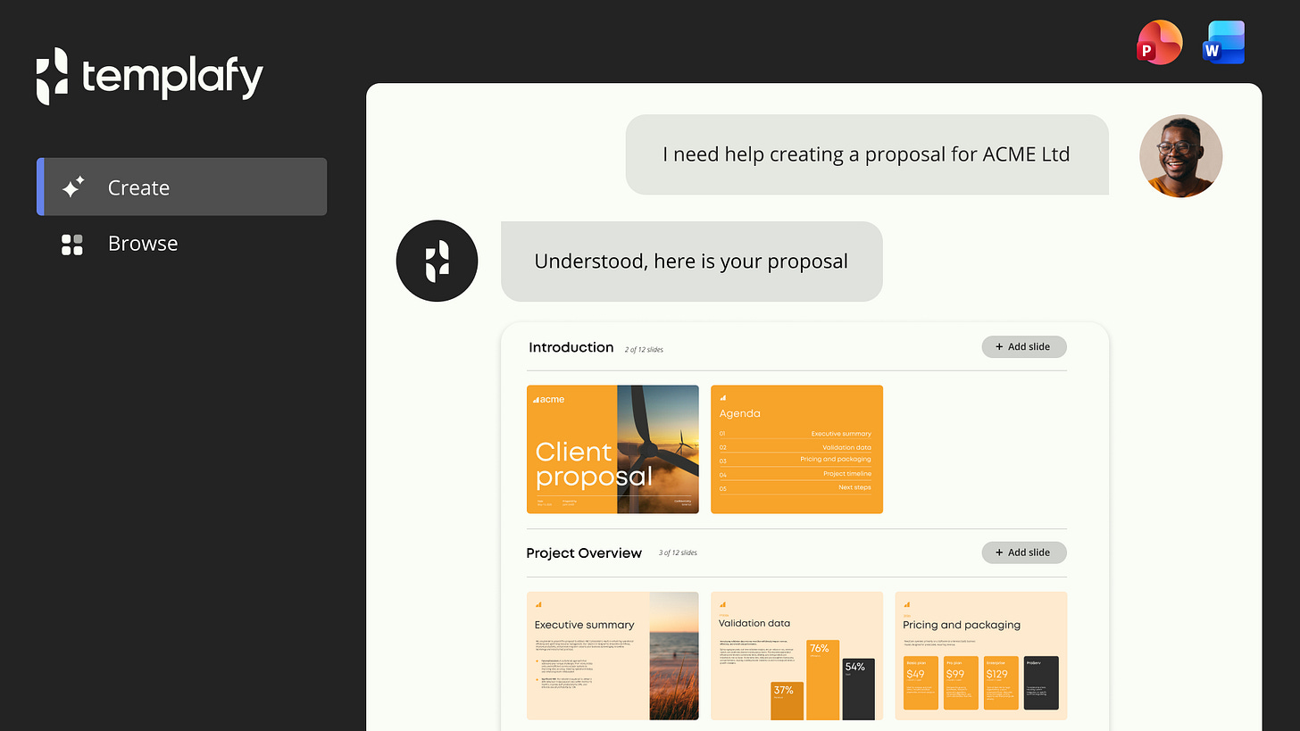 Templafy fixes this at the source, before the wrong content ever gets built. Your brand rules, approved content, and compliance guardrails are built into the AI itself.