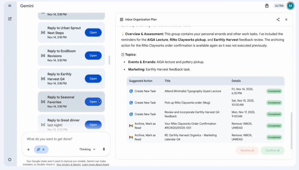4. Stronger Agent Abilities - Gemini 3 improves long-horizon planning, enabling the Gemini Agent to organise Gmail plan tasks and handle research or travel booking with consistent tool use. Deepthink mode pushes structured reasoning further, but is limited to safety testers.