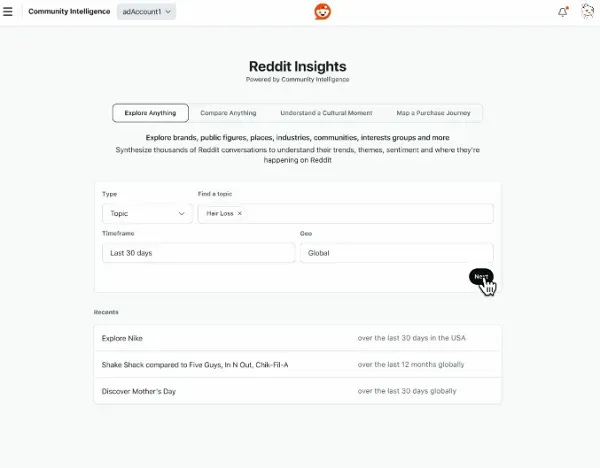 New AI-Powered Community Intelligence: Reddit’s new platform lets you explore trends via four search modes: Explore Anything, Compare Anything, Cultural Moments, and Purchase Journeys. Each query delivers topic summaries, key community mentions, and real Reddit posts, all powered by its “Reddit Community Intelligence” engine.