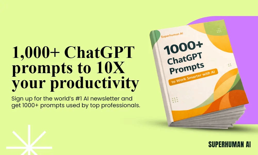 Superhuman AI newsletter (3 min daily) so you keep learning new AI tools & tutorials to stay ahead in your career, the prompts are just the beginning