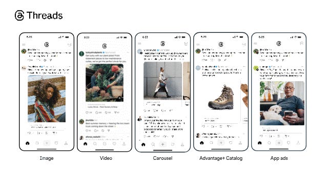 1. Threads Ads Roll Out Globally - Meta is expanding Threads ads to users in all markets, with rollout starting next week. Advertisers can add Threads placements through Advantage+ or manual campaigns. Image, video, and carousel ads will appear natively in-feed.