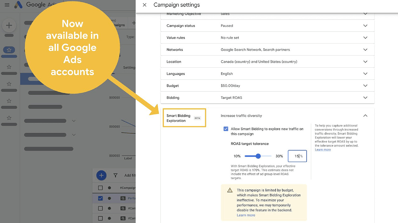 1. Smart Bidding Exploration now live for tROAS - Advertisers can now let Googleâs AI test higher-traffic segments within existing ROAS limits, unlocking more conversions without changing campaign structure or budget.