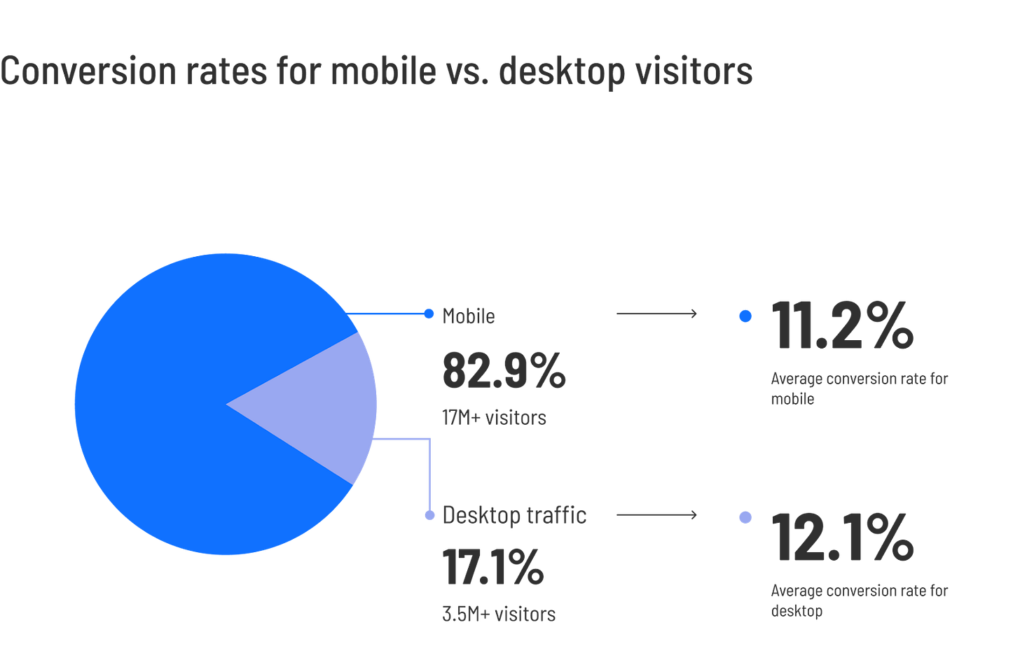 1. The Mobile Performance Gap - Despite mobile dominance in traffic, conversion rates remain significantly lower, revealing a widespread neglect of mobile UX. The report estimates that if industries optimized equally for mobile, they could have generated 1.3 million more conversions.