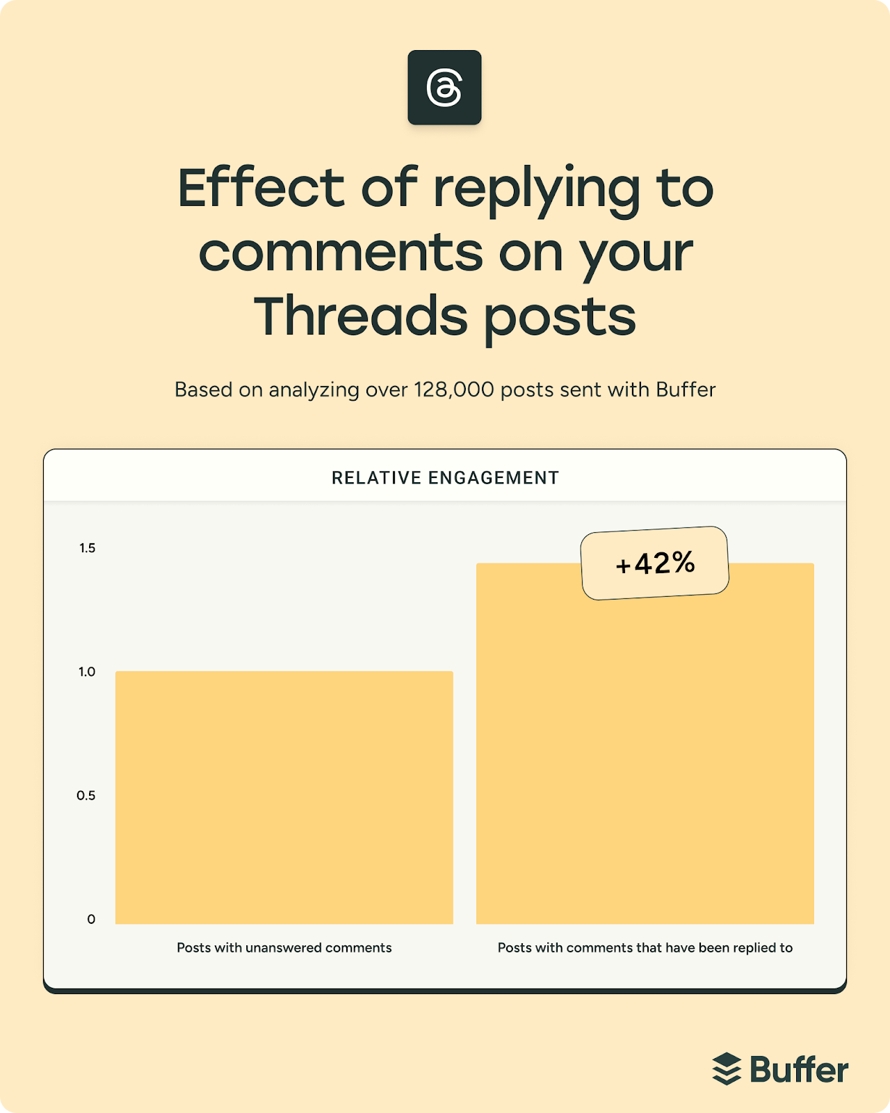 1. Threads - Threads delivers the biggest jump, with posts gaining 42% more engagement when creators reply. Its design treats replies like posts, rewarding active back-and-forth directly in the feed.