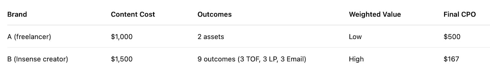 → Brand B “spent more” but extracted 3× more value per dollar by treating content like equity.