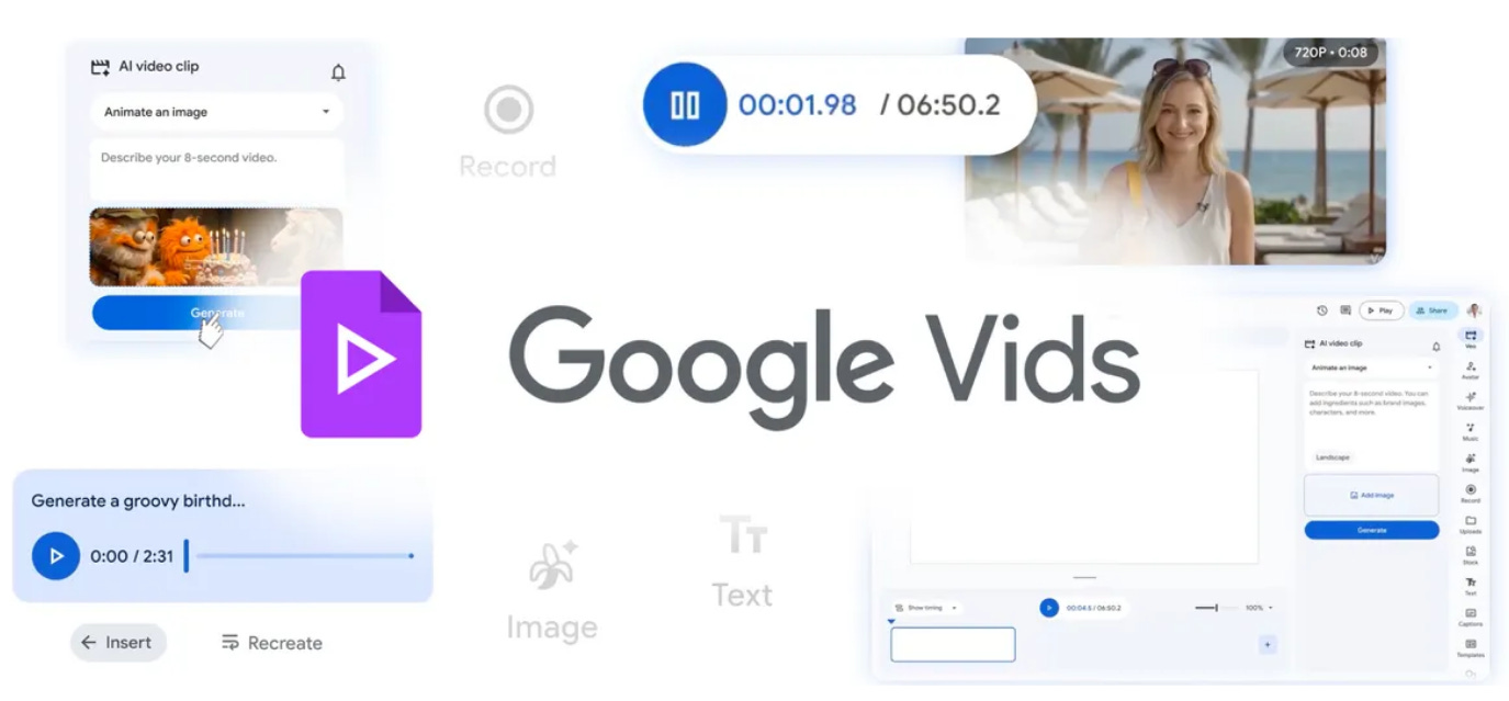 AI Avatars and Music - Google Vids now lets you create AI characters that narrate your videos with customisable outfits, backgrounds, and consistent voice, plus Lyria 3 powers custom soundtracks from 30-second clips to full 3-minute tracks.