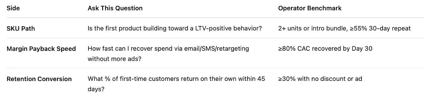 They push paid traffic to SKUs that unlock Day 15 reorder behavior, not just AOV wins