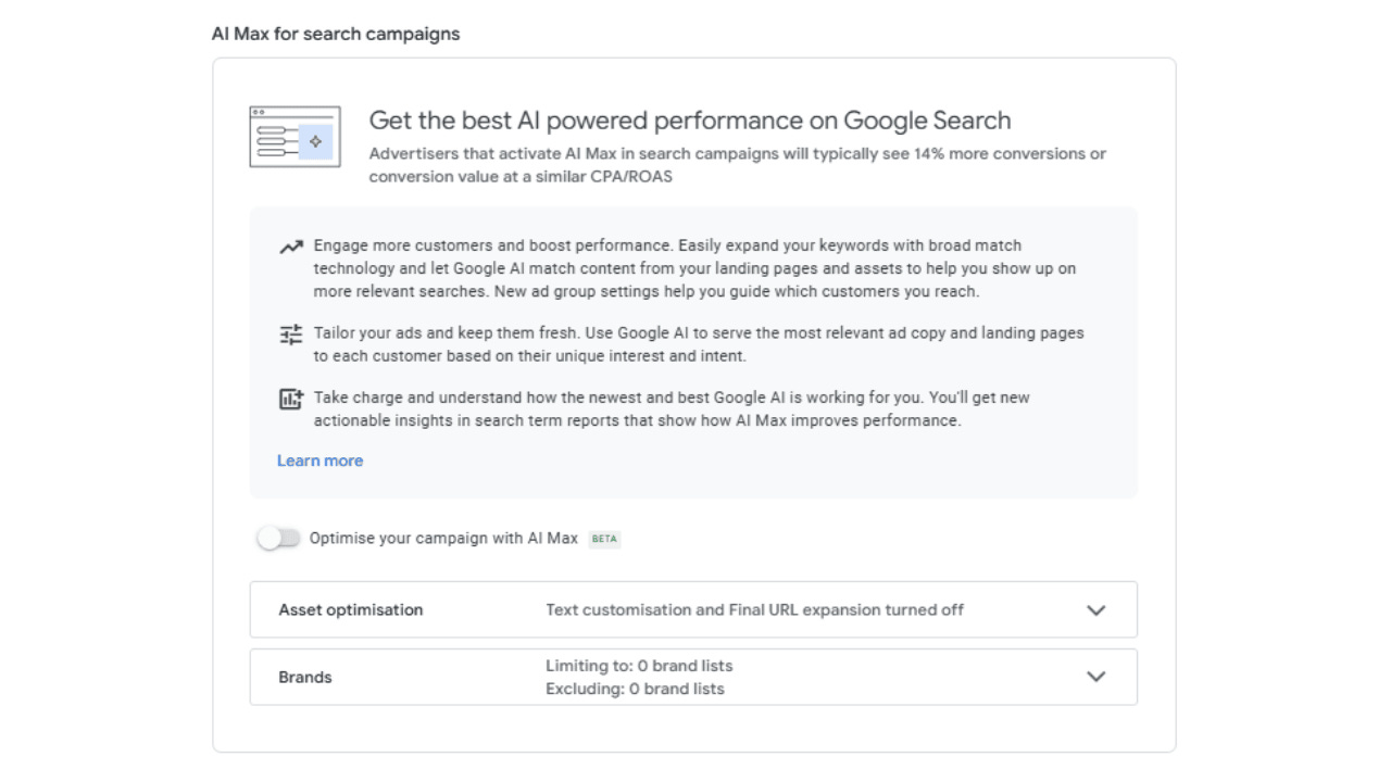 Search Max is now AI Max, with a toggle. - Inside the Google Ads interface, Search Max is being renamed to AI Max, complete with a new toggle that reads “Optimize your campaign with AI Max,” aligning with Google’s larger AI branding push from Google Marketing Live 2025
