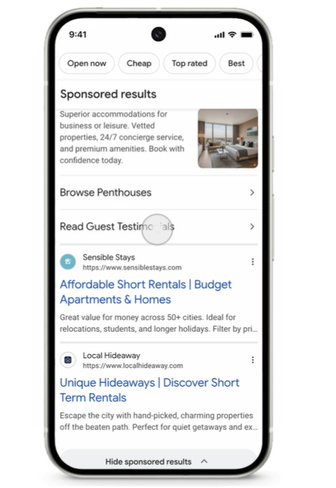 1) Clearer Ad Navigation in Google Search - Google is improving ad visibility with a new âSponsored resultsâ label that groups text and Shopping ads under one header on desktop and mobile. The label remains visible as users scroll, and a new âHide sponsored resultsâ option lets them collapse ads to view only organic results.