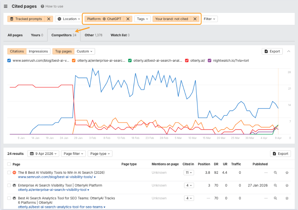 Pages ranked in position 1 get cited 4x more than position 10. If you’re not on page one, you’re essentially invisible to AI.