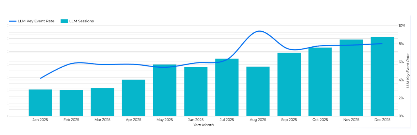 Brands are asking the same question: how much does LLM traffic actually matter? A 13-month analysis of referral data reveals something nuanced. LLM traffic is small today, but growing fast and converting at exceptional rates.
