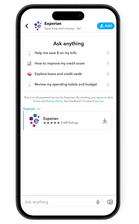 Snapchat Put AI Chatbots in DMs - Snapchat launched sponsored AI chatbots appearing directly in user inboxes alongside personal messages. Users can talk to branded bots and ask follow-up questions about products.