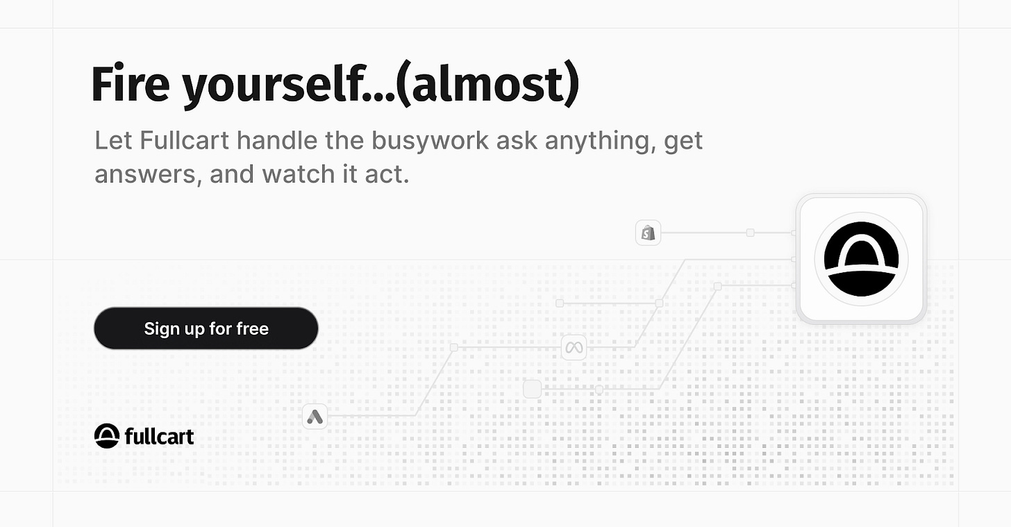 Fullcart is the AI Operator that brings your data, ads, and ops together into one intelligent system that analyzes, answers, and fixes what’s broken before you notice.